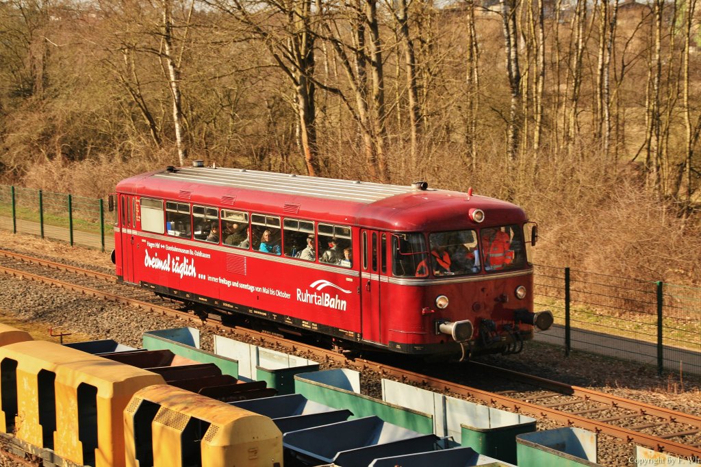 Der Schienenbus VT 796 796 der Ruhrtalbahn bei der Zeche Nachtigall am 01.04.13.