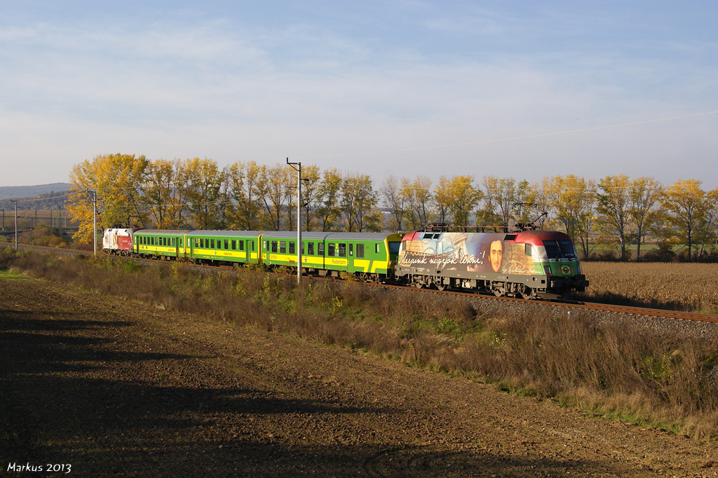 Am 01.11.2013 waren die beiden GySEV/Raaberbahn Loks 470 501 "Sisi" und 470 505 "Széchenyi" mit R9115 (Szombathely - Sopron) bei Kópháza unterwegs.