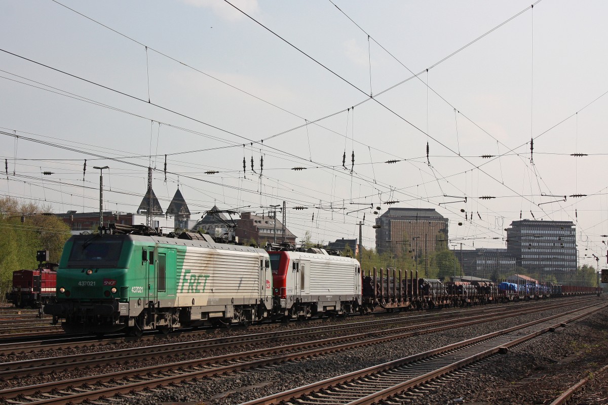 Ein Zug, mehrere Loks. Die SNCF BB26160 zieht den Zug ab Strasbourg (Straßburg) nach Westen.