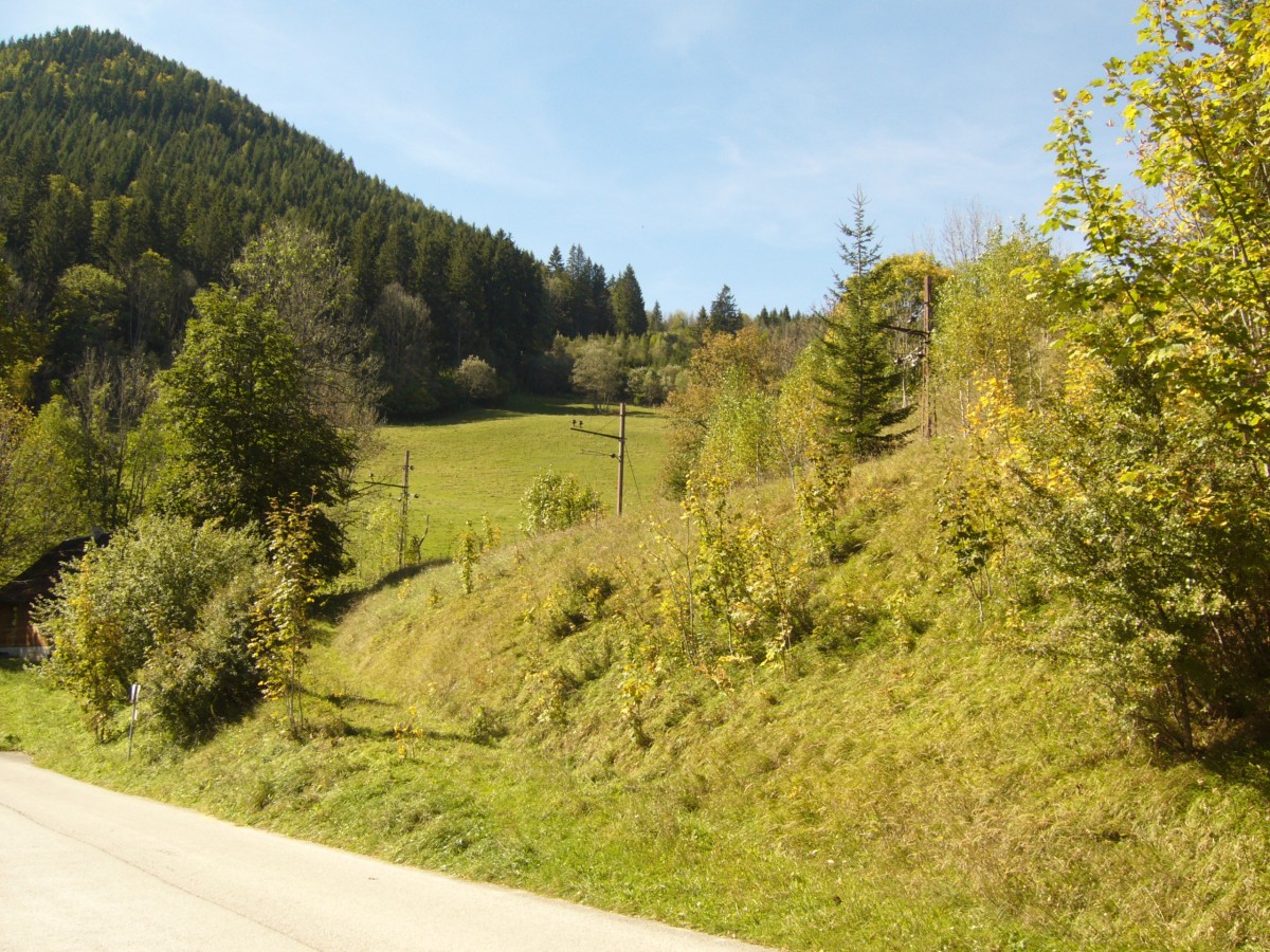 Im aufgelassenen Teil der Mariazellerbahn auf steirischer Seite zwischen Mariazell und Gußwerk hier bei St.Sebastitan - Rasing, (im Hintergrund sieht man den 1297m hohen Tribein)sieht es so aus als ob die Anlagen noch alle noch da wären, jedoch wie beim Bild zuvor zu sehen sind die Geleise bereits abgebaut, Sept.2010