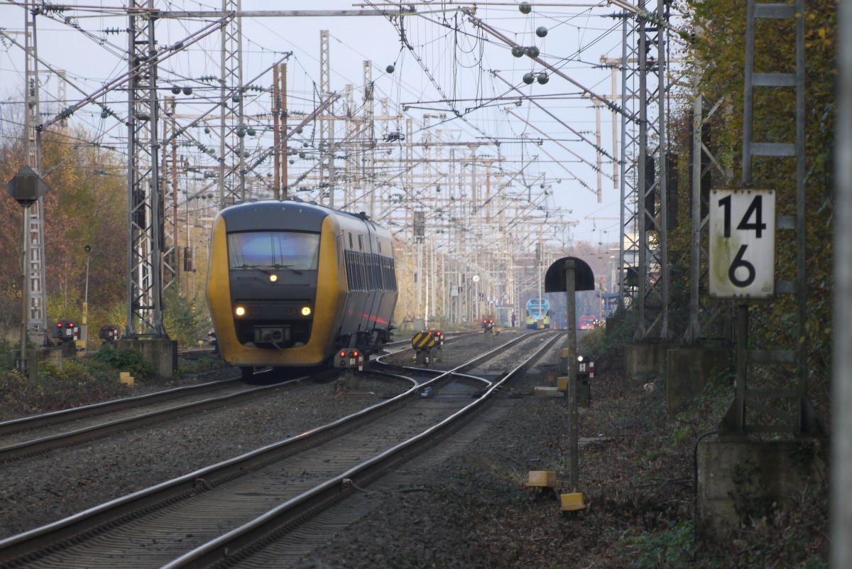 605 004 eilt am 24.11.13 als ICE 36 von Kopenhagen nach Hamburg Hbf und hat soeben Reinfeld passiert.