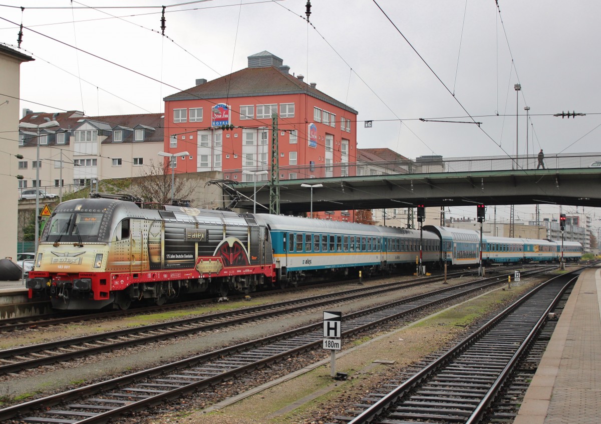 Am 23.November 2013 rangierte 183 001 mit zwei Personenwagen im Regensburger Hbf.