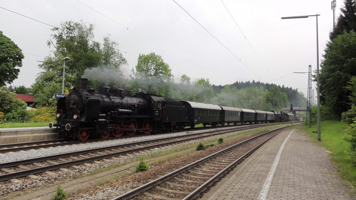 Eine hochinteressante Garnitur stellte der Überführungszug dar, der am 17.05.2013 von der ÖGEG in Ampflwang nach Bad Endorf gebracht wurde. 38 1301 wurde mit den 5 Wagen dahinter an den folgenden Pfingstfeiertagen auf der Lokalbahn Endorf-Obing (LEO) eingestzt und an diesem Tag bereits nach Obing überführt. 01 1533 fuhr mit ihrem einen Wagen weiter nach Augsburg.