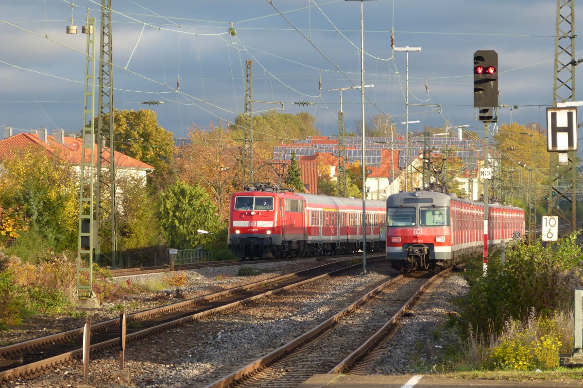 111 029 nach Stuttgart und 420 439 nach Bietigheim am 24.10.13 in Kornwestheim