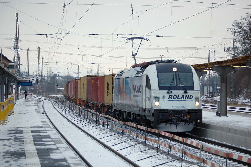 1216 955 (Roland) mit einem Containerzug am 17.01.2013 in Kreiensen