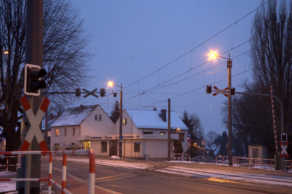 Der BÜ am Weißen Roß , es ist noch etwas Zeit bis zur Ankunft des nächsten Zuges.
