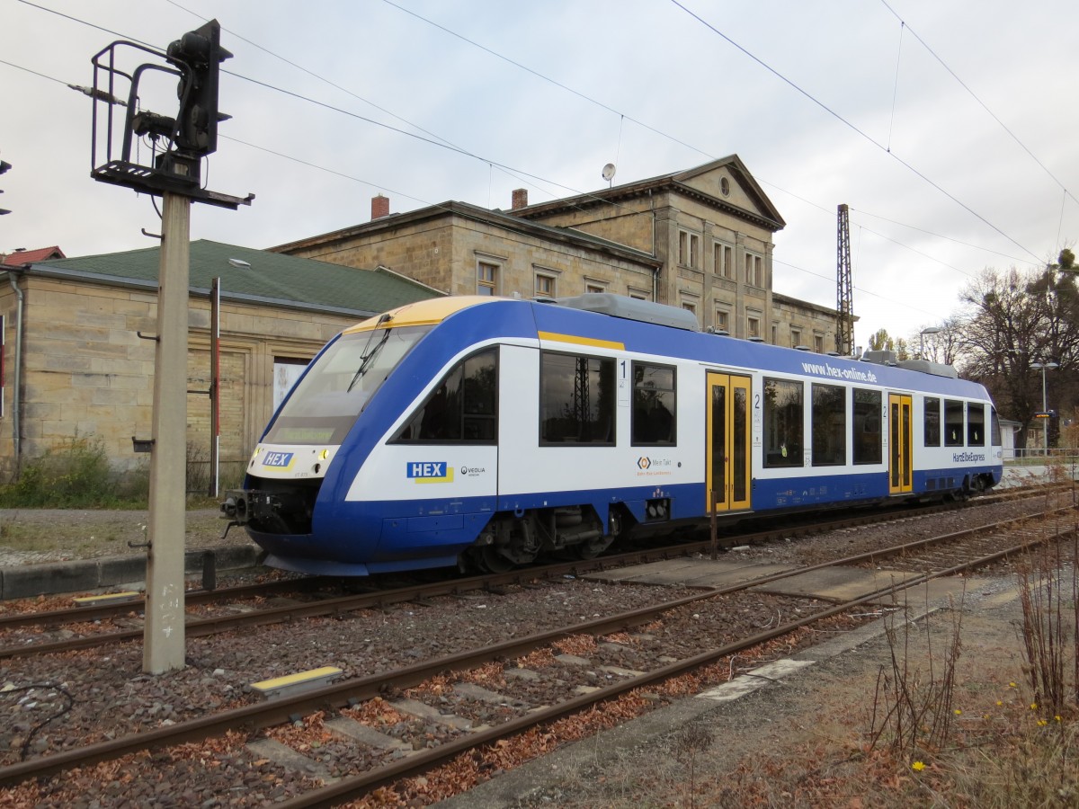 VT 873 des HEX am 01.11.2013 in Halberstadt nach Blankenburg (Harz)