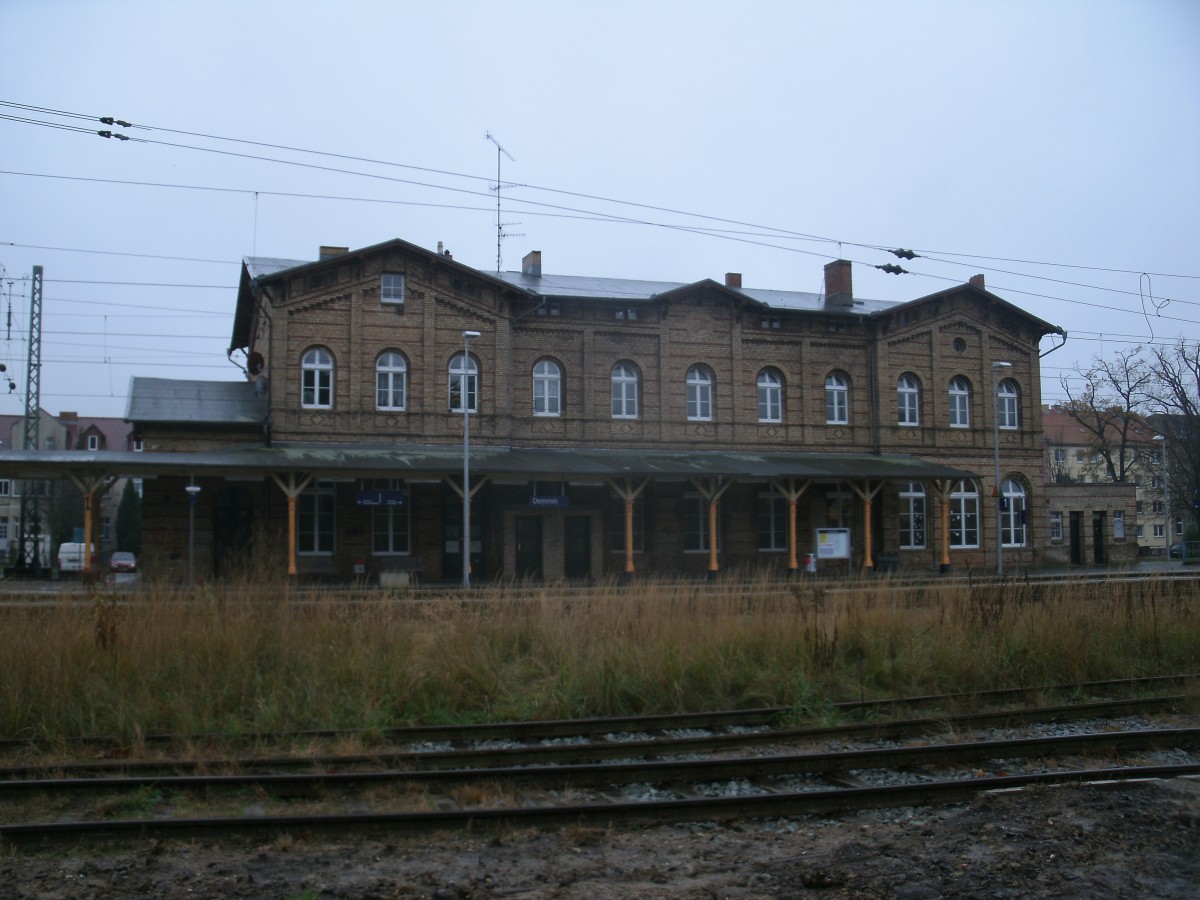 Das Bahnhofsgebäude von Demmin ist wieviele andere Bahnhofsgebäude ebenfalls leer und steht zum Verkauf.Aufgenommen am 02.November 2013.