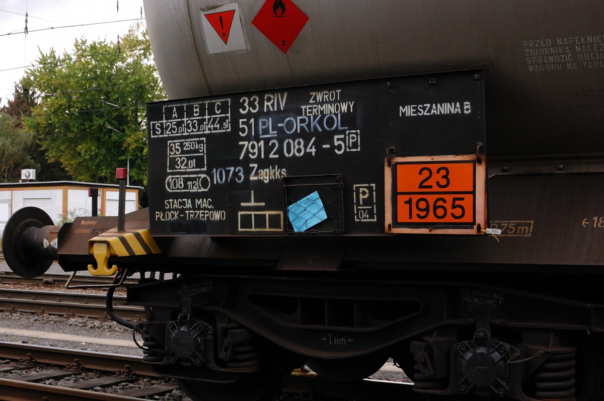 Tankwagenanschrift auf einem Wagon in Brühl vor einer Raffenerie. 14.9.2013