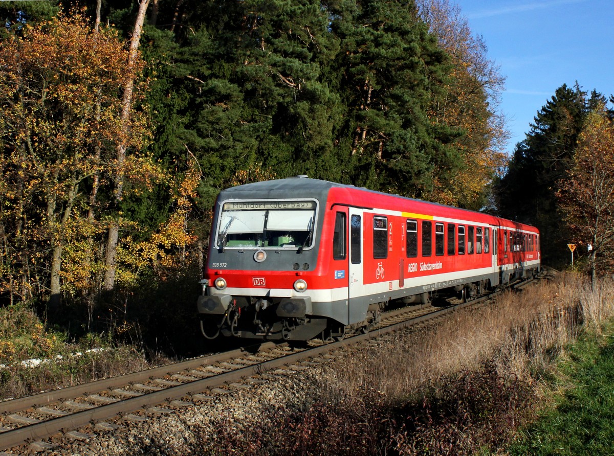 Die 628 572 als RB nach Mühldorf am 08.11.2013 unterwegs bei Pirach.