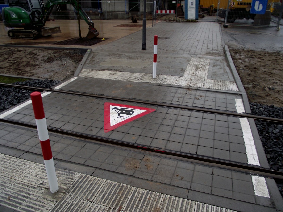 Straßenbahnübergang am 12.12.11 in Frankfurt am Main