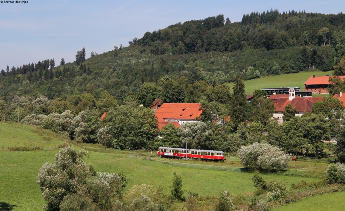 VT 8 und VS 14 der SAB als SAB-Sommerferien-Express (Schelklingen-Offenhausen) bei Grafeneck 21.8.13