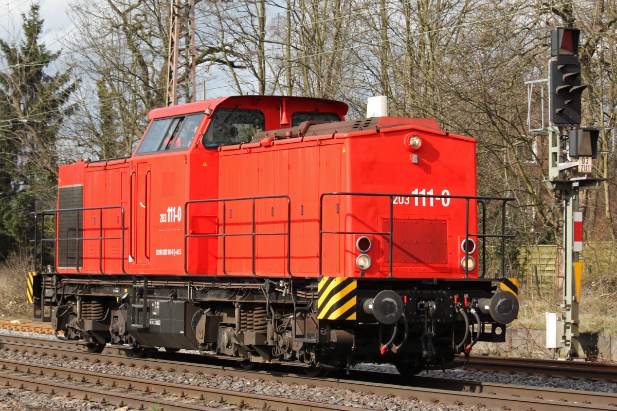 EBM Cargo 203 111 am 12.4.13 als Tfzf in Ratingen-Lintorf.