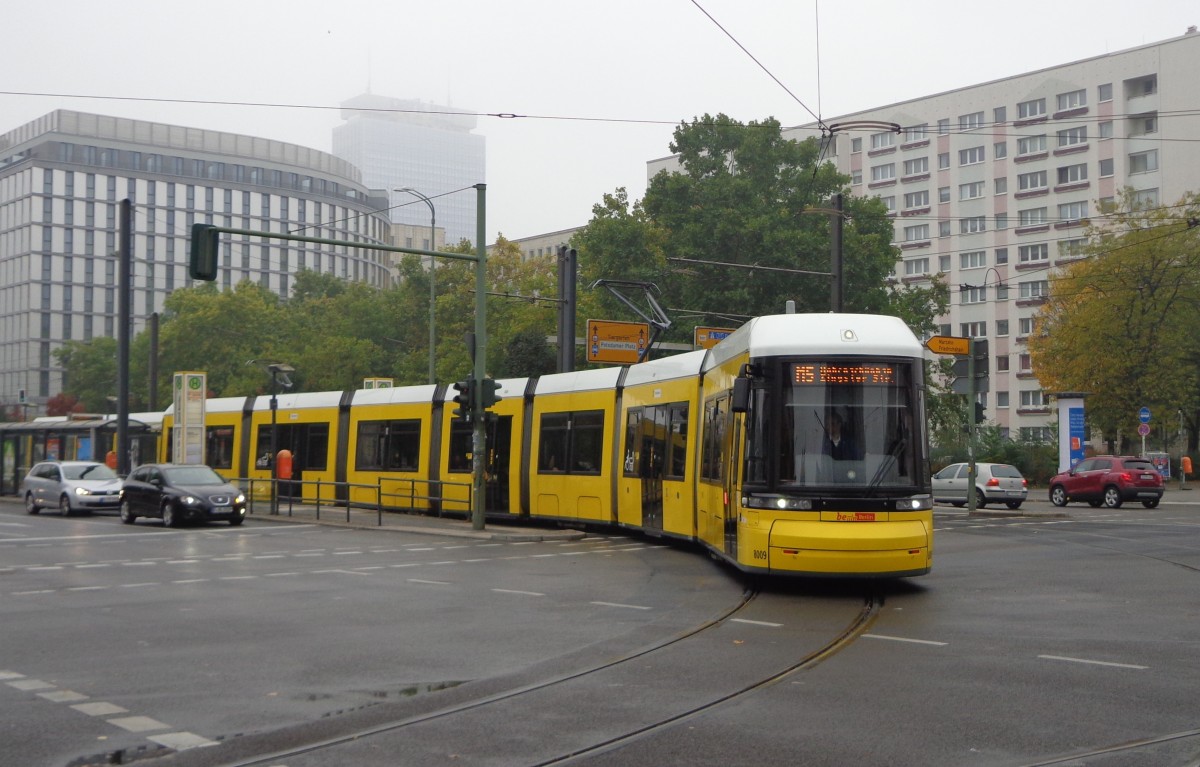 BVG Bombardier Flexity 8009 am 12.10.13 als M5 Zingster Str. auf der Kreuzung Mollstraße / Otto-Braun-Str.