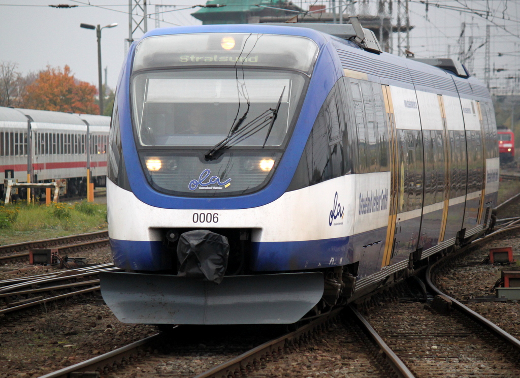Bald in Stralsund Geschichte:die OLA.Am 12.Oktober 2013 fuhr der OLA VT0006 aus Neustrelitz im Stralsunder Hbf ein.