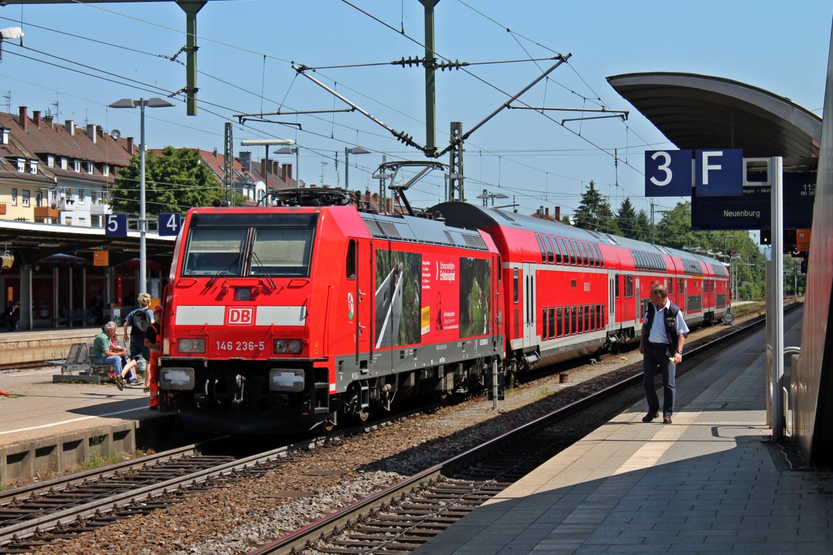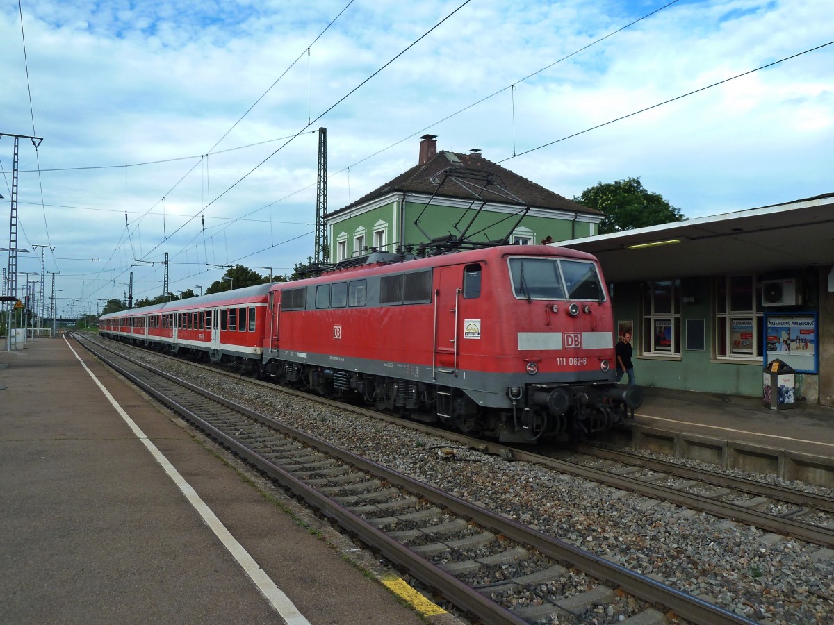 52 7596 fährt in Radolfzell ab, im Hintergrund das Radolfzeller Münster. Oktober 2013.