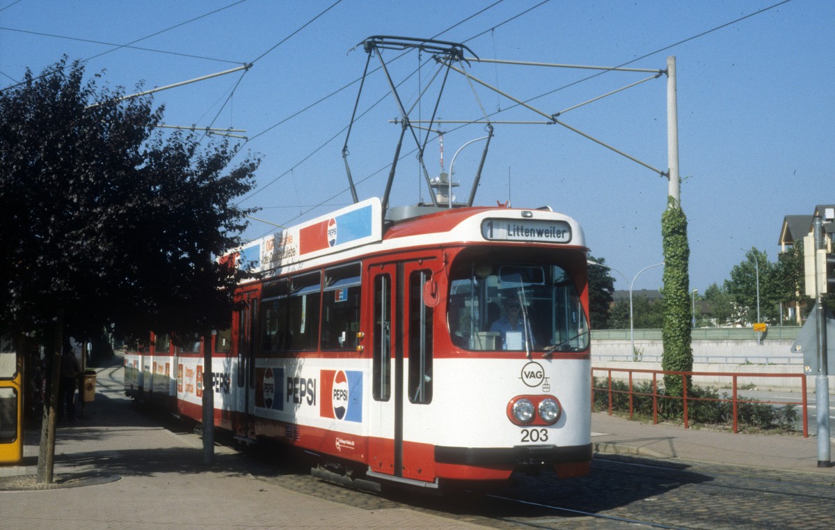An einem Sommerabend 1991 ist der 1926 von Harkort gebaute Museums-Tw 177 auf der Düsseldorfer Strasse in Duisburg unterwegs. Bei diesem Fahrzeug handelt es sich um den ersten europäischen Gelenk-Sechsachser. Für mich einer der schönsten Strassenbahn-Tw überhaupt.