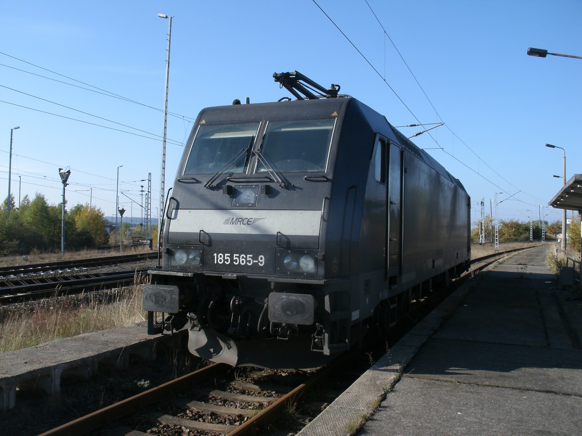 MRCE 185 565,am 14.Oktober 2013,am Bahnsteig in Mukran Mitte.