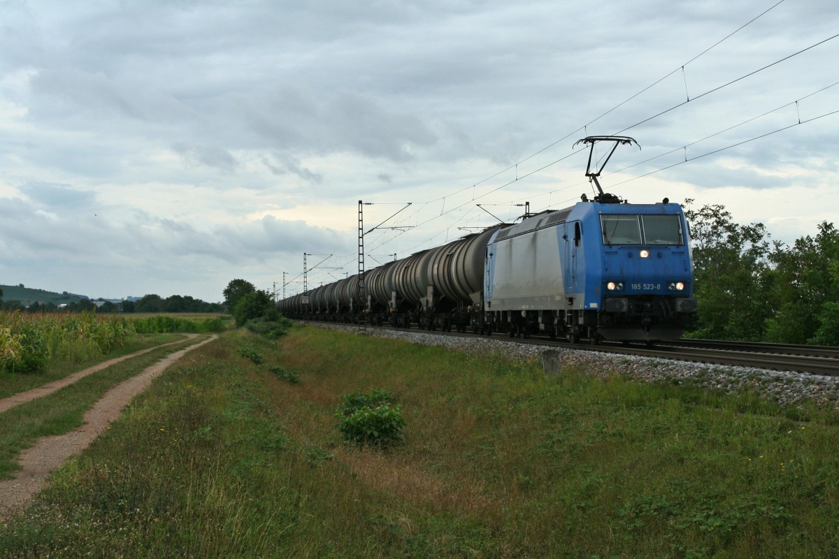 Die 185 528 mit einem Kesselzug am 06.07.2013 unterwegs bei Himmelstadt.