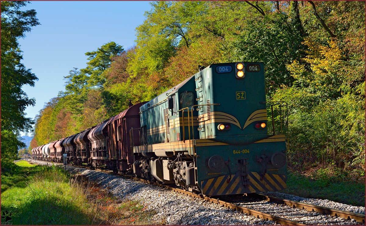 S´ 644-004 zieht Güterzug durch Maribor-Studenci Richtung Tezno Verschiebahnhof. /17.10.2013