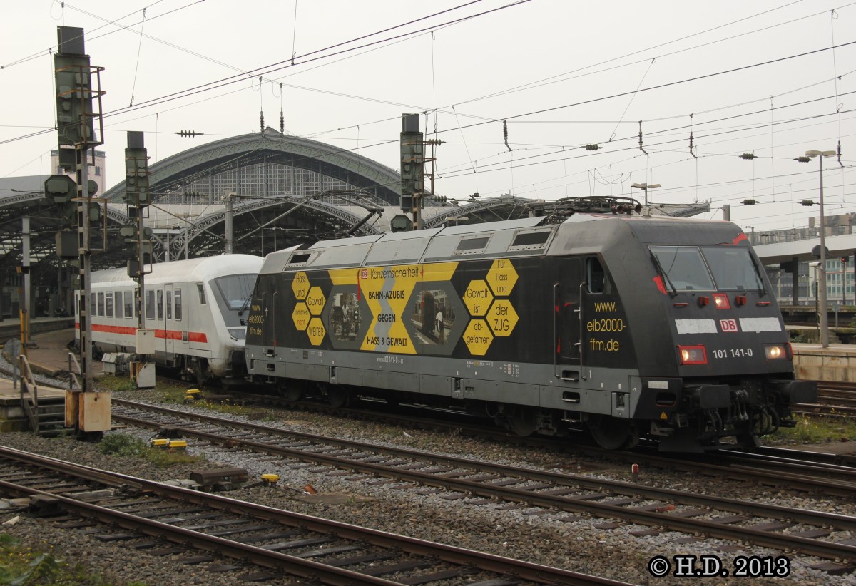 101 141-0 'Bahn-Azubis gegen Hass und Gewalt' fuhr am 05.10.2013 aus dem Kölner Hbf.