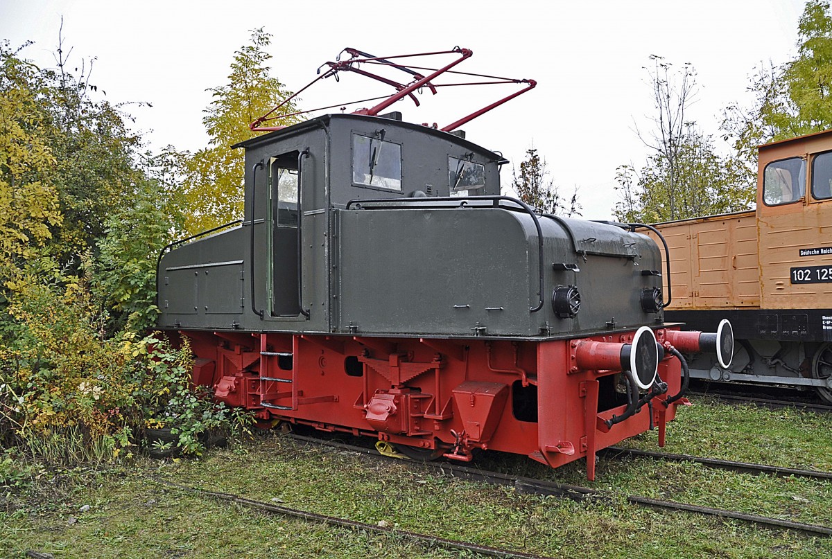 12.10.2013 Weimar Bw-Fest; etwas abseits stand eine EL 4 aus den LEW Hennigsdorf, Lieferzeitraum 1954 - 1970, 18 Stück für Regelspur, eine Lok für Werks- und Anschlußbahnen. Einsatz u.a. auch auf der Industriebahn Berlin-Schöneweide