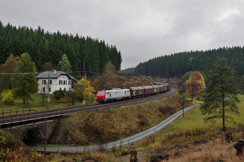 189 002 mit KT 42146 am 20.10.2013 bei Bastelsmühle gen Saalfeld.