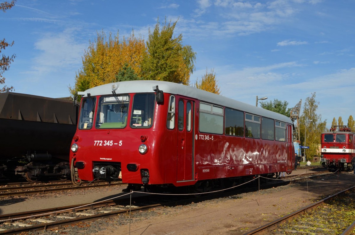 19.10.13 / die nicht Betriebsfähige 52 8098-7 des Bahnmuseum Leipzig durfte zur Fahrzeugausstellung auch mal aus dem Lockschuppen