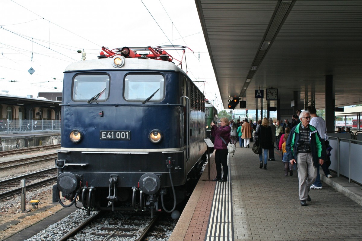 E41 001 am Nachmittag des 15.09.13 beim Bahnhofsfest vom Badischen Bahnhof in Basel ausgestellt auf Gleis 2.