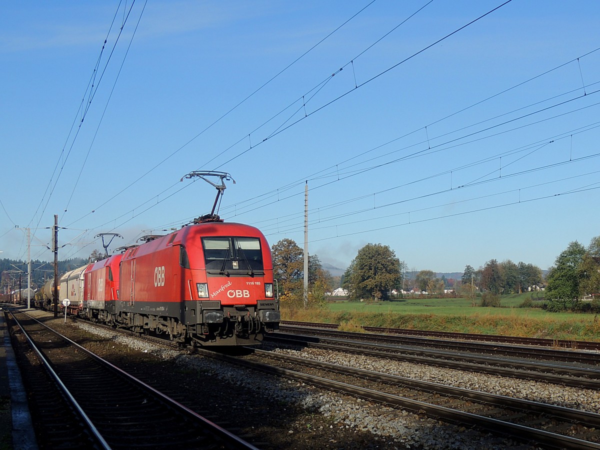 1116 221-3 durchfährt mit Doppelgarnitur als RJ162 den Bhf. Attnang-Puchheim; 131024
