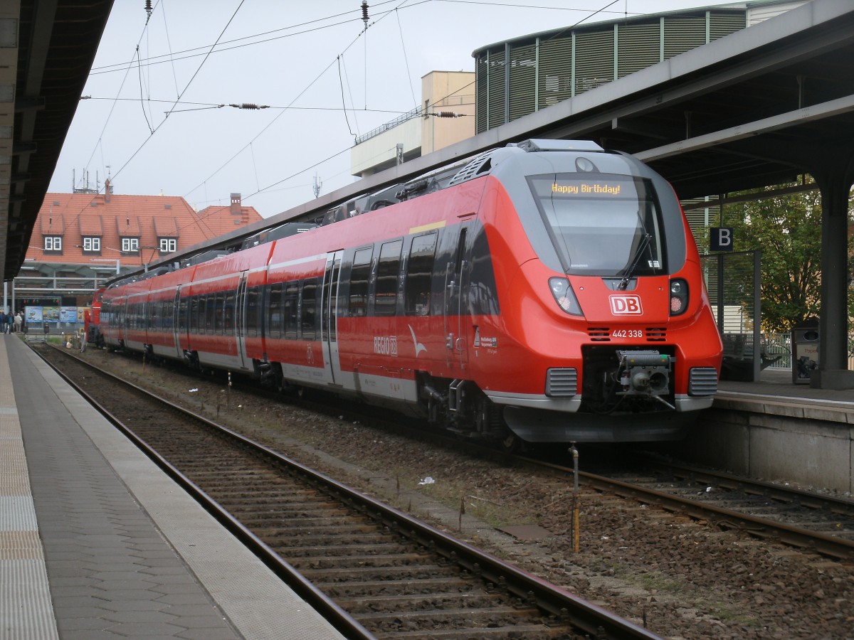 Der Rostocker Hamster 442 338/838 beim Stralsunder Bahnhofsfest am 12.Oktober 2013.
