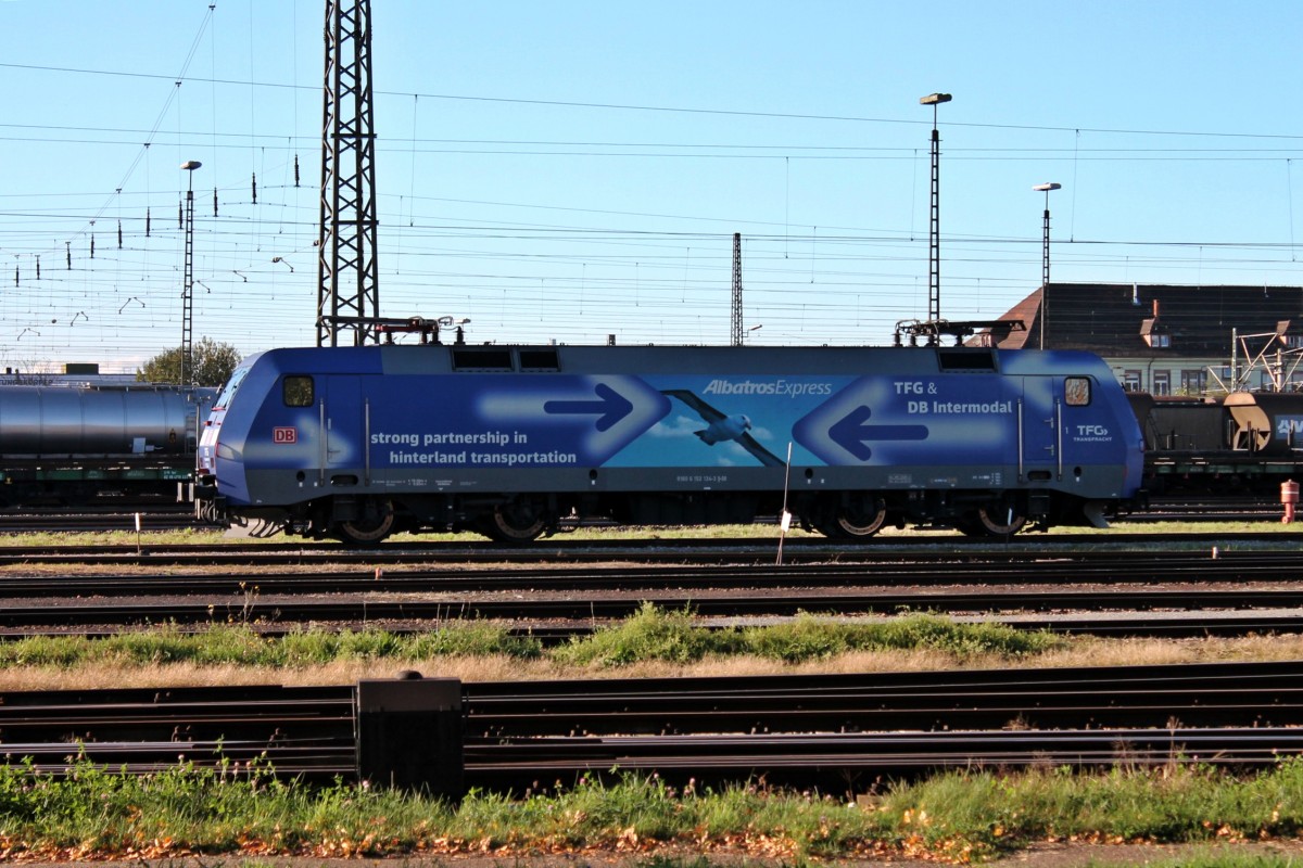 Volle Breitseite: Am Abend des 24.10.2013 sonnte sich "AlbatrosExpress" 152 134-3 im BH Offenburg und wartet auf ihren nächsten Einsatz.