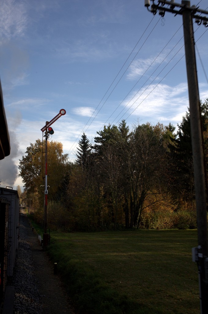 Der Standpunkt ist ungefährlich, denn hinter mir steht ein Prellbock und nach Vorne ist das Gleis gekappt und ohne Anschluß.