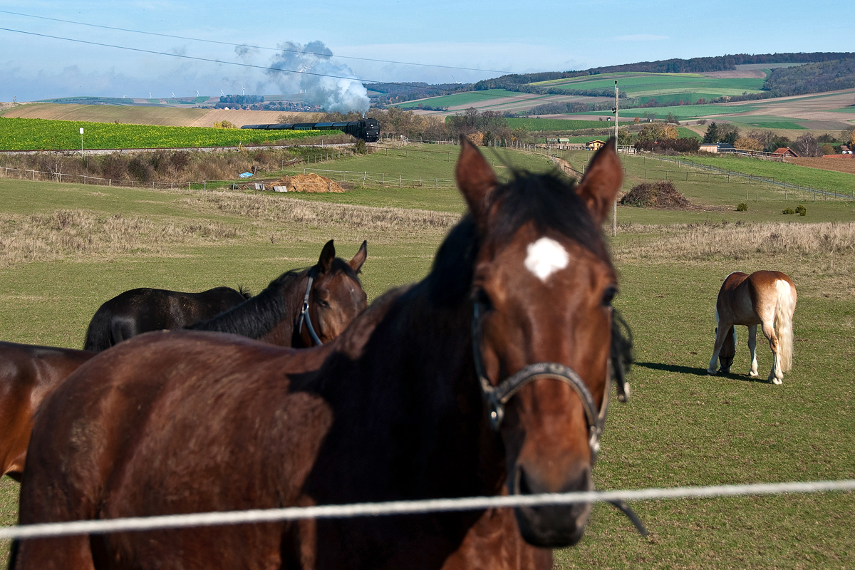 Mehrere Pferdestärken konnten am 26.10.2013 bei Würnitz-Hetzmannsdorf fotografisch festgehalten werden, als die BR 52 100 den Nostalgie Express Leiser Berge von Ernstbrunn nach Korneuburg brachte.