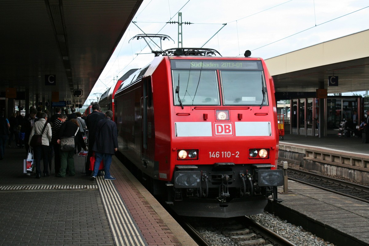 146 110-2 am Nachmittag des 15.09.13 beim Bahnhofsfest vom Badischen Bahnhof in Basel ausgestellt auf Gleis 3.