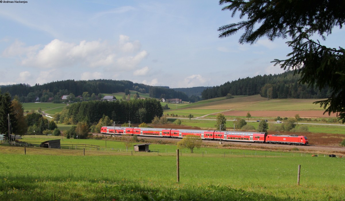 146 112-8 mit einem RE von Basel nach Offenburg am Nachmittag des 28.09.13 im nördlichen Weichenbereich des Bahnhofs Müllheim (Baden).