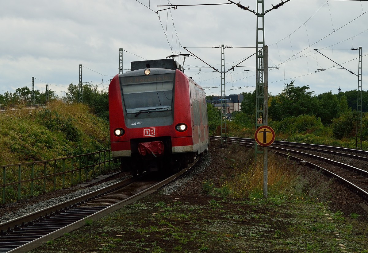 Ohne Neigetechnik legt sich der 425 040 im Gleisbogen,im Bahnhof Leutesdorf Gleis 3 mächtig ins Zeug, auf seinem Weg in Richtung Köln als RE8. 14.9.2013