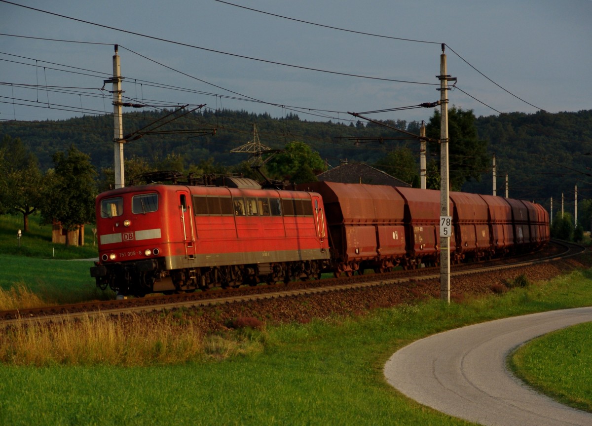 151 009 mit einem Erzzug am 02.07.2008 bei Ingling.