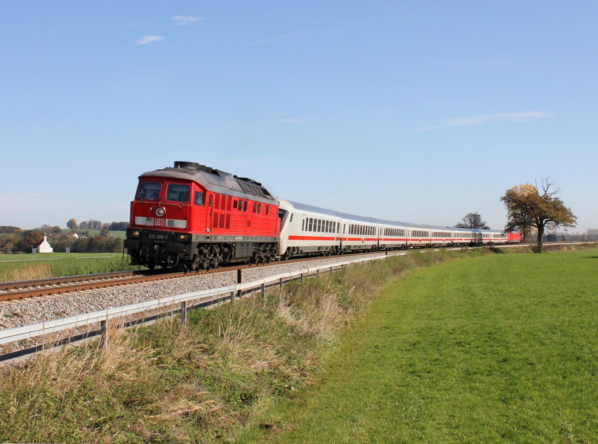 Die 232 209 mit einem EC am 26.10.2013 unterwegs bei Weidenbach.