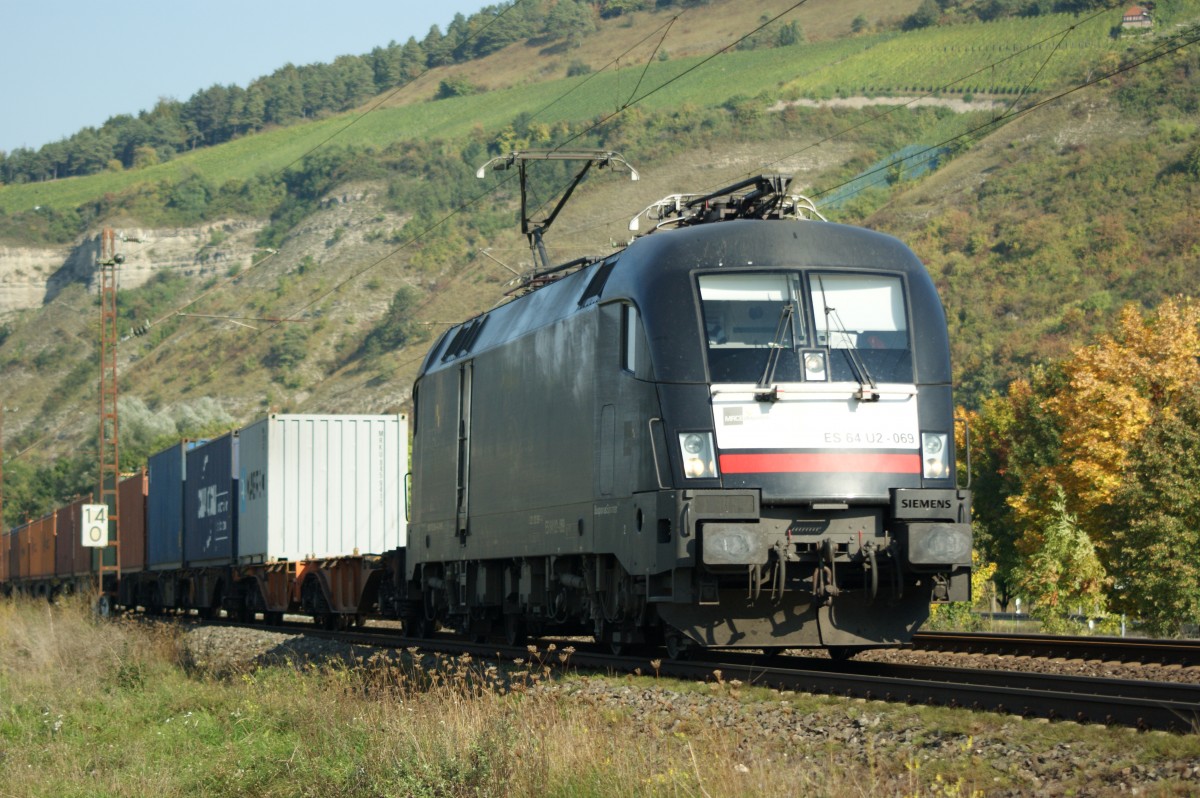 ES 64 U2-069 (182 569) mit einen Containerzug Richtung Würzburg am 02.10.13.