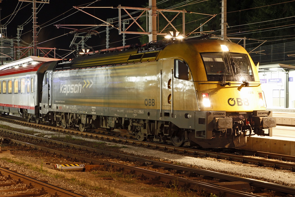 1216 210 (Kapsch) steht am 2.10.2013 mit EC173 abfahrbereit in Bruck/Mur.