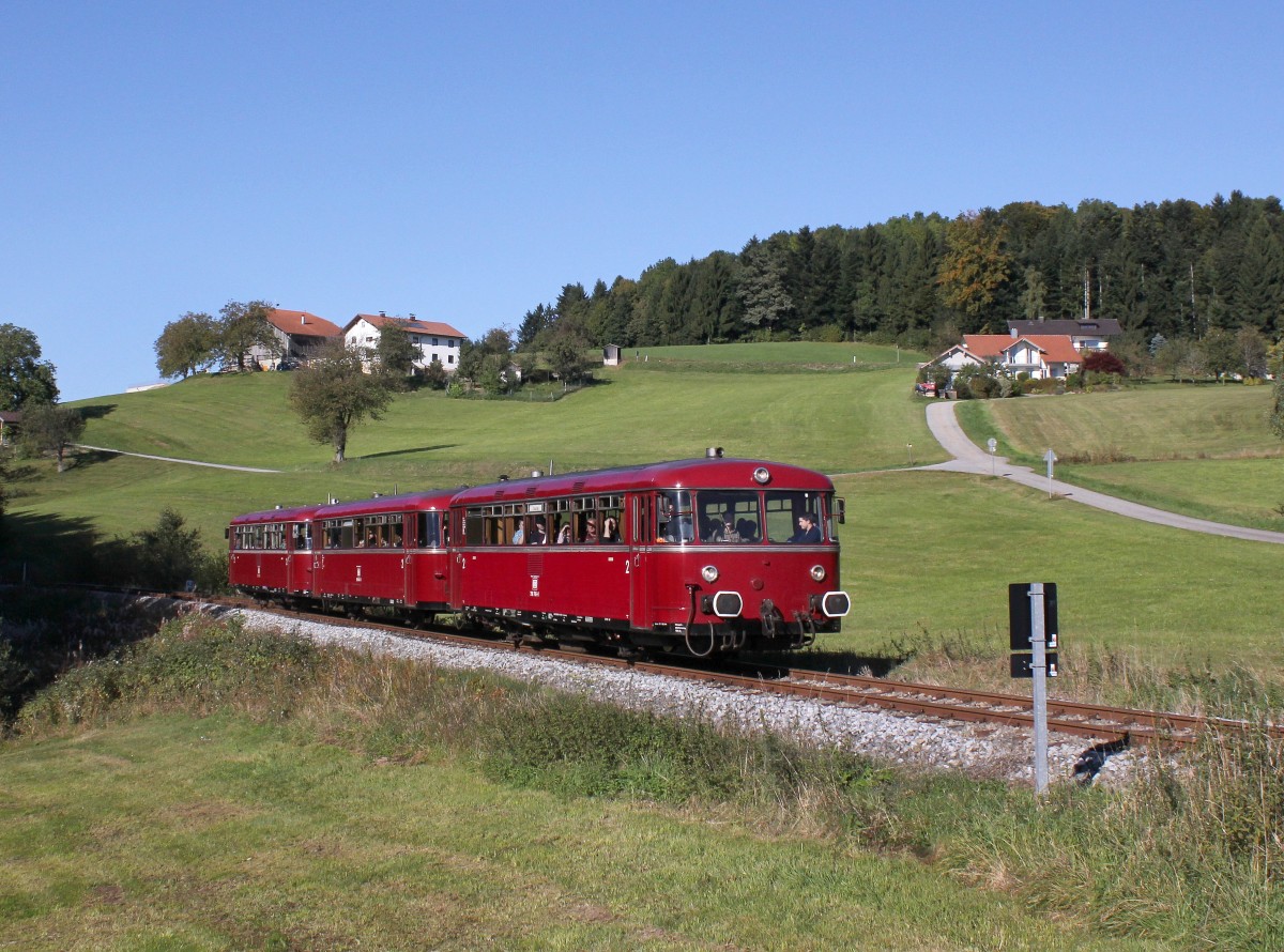 Altweibersommer im Kraichtal. An diesem schönen Spätsommertag des 24.09.2013 konnten AVG ETW 806 und 808 bei Oberöwisheim fotografiert werden.