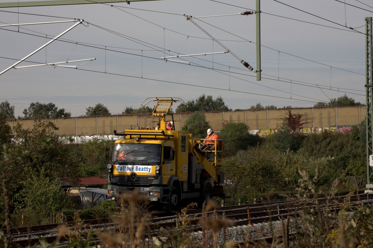 Kurze Pause leistet sich hier die Mannschaft des Turmwagens.04.10.2013  11:46 Uhr