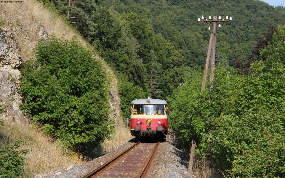 ABa mot 2 mit Sommerwagen Baw-a 504 (UIC-Nr.: H-MAV 50 55 25-01 001-1) am 08.September 2013 als Zug 553 kurz nach dem Bf. Hüvösvölgy.