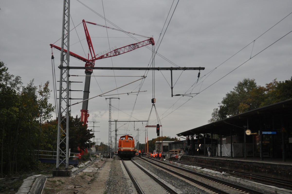Großbaustelle Berlin Karlshorst heute (am 05.10.2013) morgen gegen 08:00 Uhr wird die neue S-Bahn Brücke über die Treskowallee eingeschwenkt.
