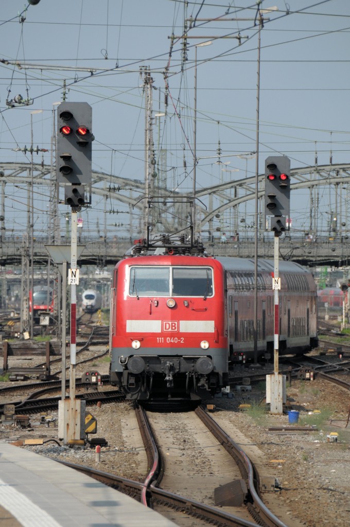 111 039-4 (DB) fährt am 22. August 2013 um 18:31 Uhr mit einer Regionalbahn in Richtung Kufstein durch Großkarolinenfeld