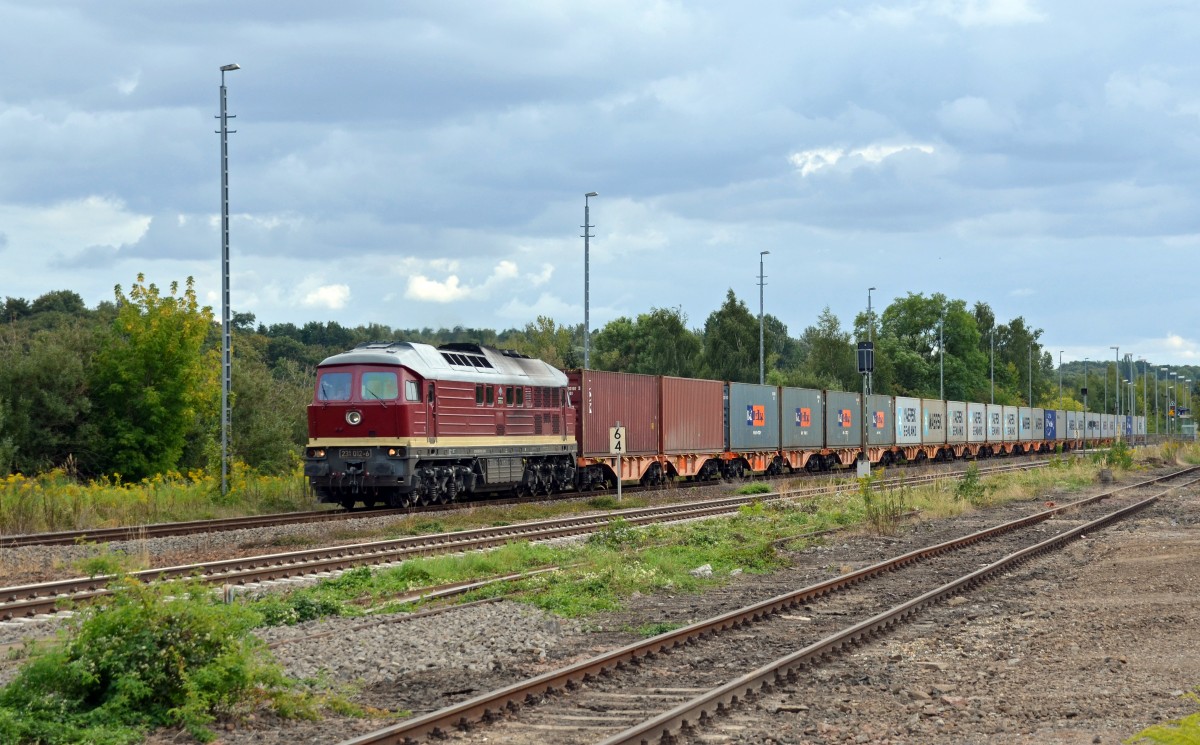 Mit einem Containerzug erreicht 321 012 am 01.09.13 Halle-Trotha.