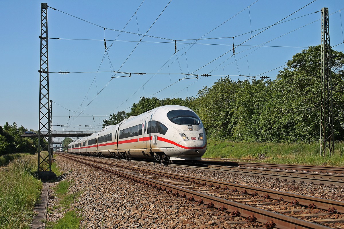 Nachschuss am 13.06.2013 auf 401 578-0 "Bremerhaven", als er durch die Ortschaft Orschweier gen Freiburg rauscht.