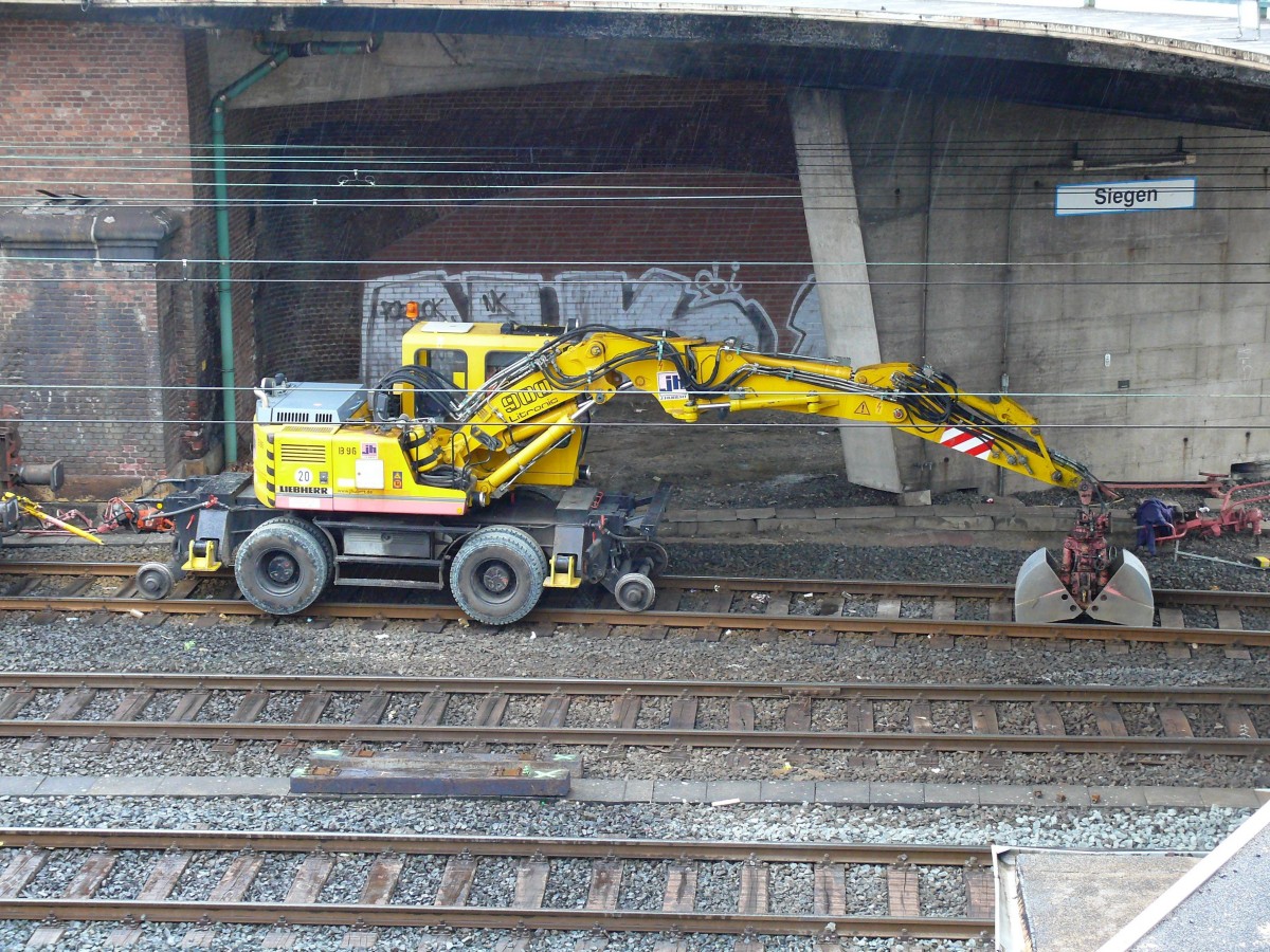 Der Mobilbagger Liebherr 900 Litronic kann als Zweiwegegerät wahlweise auf der Straße oder auf Eisenbahnschienen fahren