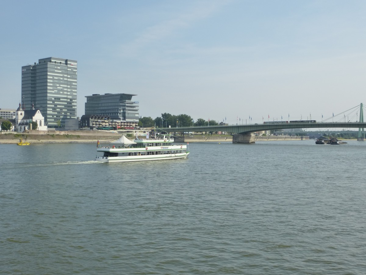 Zwei Triebzüge der Stadtbahn Köln fahren hier am 22.08.2013 auf der Deutzer Brücke in Köln.